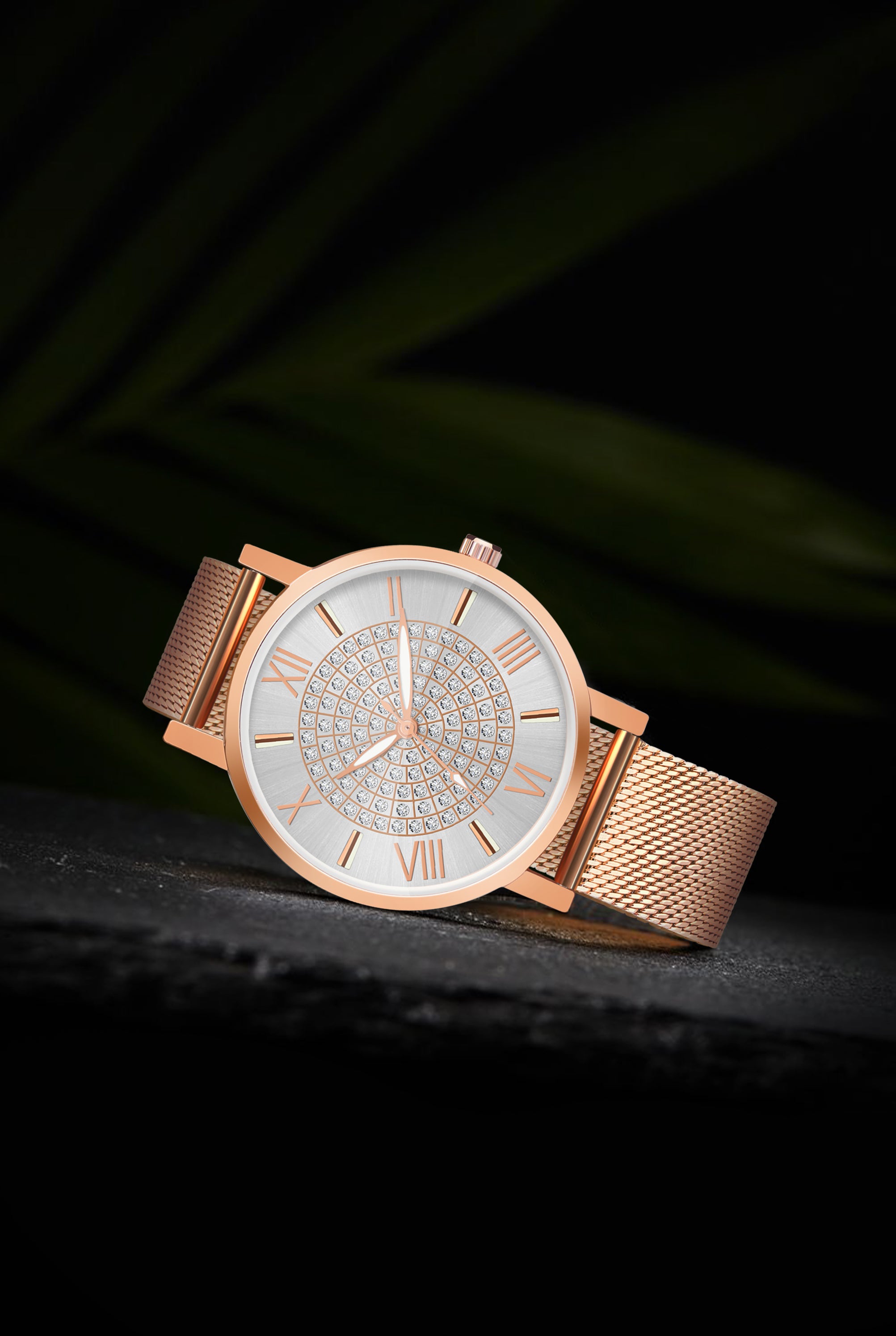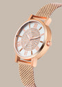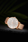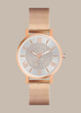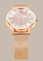Step into the spotlight with the Aria Watch, a dazzling accessory crafted for women who love to sparkle with grace. This elegant timepiece features a finely woven rose gold mesh strap paired with a radiant silver dial.