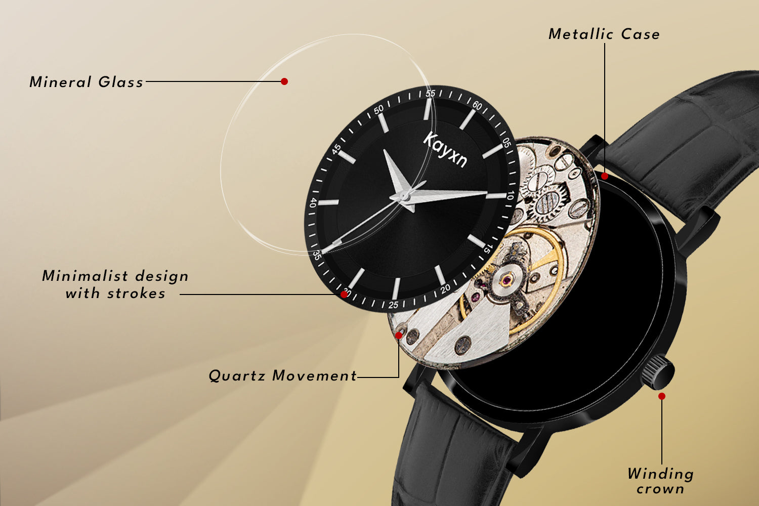 This exquisite timepiece is paired with a premium black leather strap that offers unmatched comfort and durability. Whether you're attending a formal event, navigating a busy workday, or enjoying a casual evening, the Ebonique is your perfect companion.