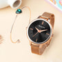 Make every moment stylish with this stunning Eclipse women’s watch and bracelet combo. The elegant wristwatch features a bold black dial with a sleek rose gold mesh strap, creating a perfect balance of sophistication and modern design. Paired with a chic open bracelet, adorned with a sparkling green heart charm, this set adds a romantic yet classy touch to your look. Ideal for daily wear, parties, and special occasions, this combo also makes a thoughtful gift for birthdays, anniversaries, or festive celebrations. Lightweight, elegant, and versatile, it’s the perfect accessory to complement any outfit.