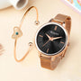 Make every moment stylish with this stunning Kayxn wrist watch and bracelet combo. The elegant wristwatch features a bold black dial with a sleek rose gold mesh strap, creating a perfect balance of sophistication and modern design. Paired with a chic open bracelet, adorned with a delicate heart charm and sparkling stone detail, this set adds a romantic touch to your look. Ideal for everyday wear, parties, and special occasions, this combo also makes a thoughtful gift for birthdays, anniversaries, or festive celebrations. Lightweight, elegant, and versatile, it’s the perfect accessory to complement any outfit.