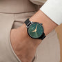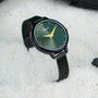 Timeless elegance meets modern sophistication with the Jade Embellished Dial Analogue Watch. This stunning women’s wristwatch features a rich emerald green dial, harmonized perfectly with a radiant black case and mesh strap. Designed to elevate any outfit, the minimalistic dial showcases delicate golden hour markers, adding subtle charm to your wrist.
