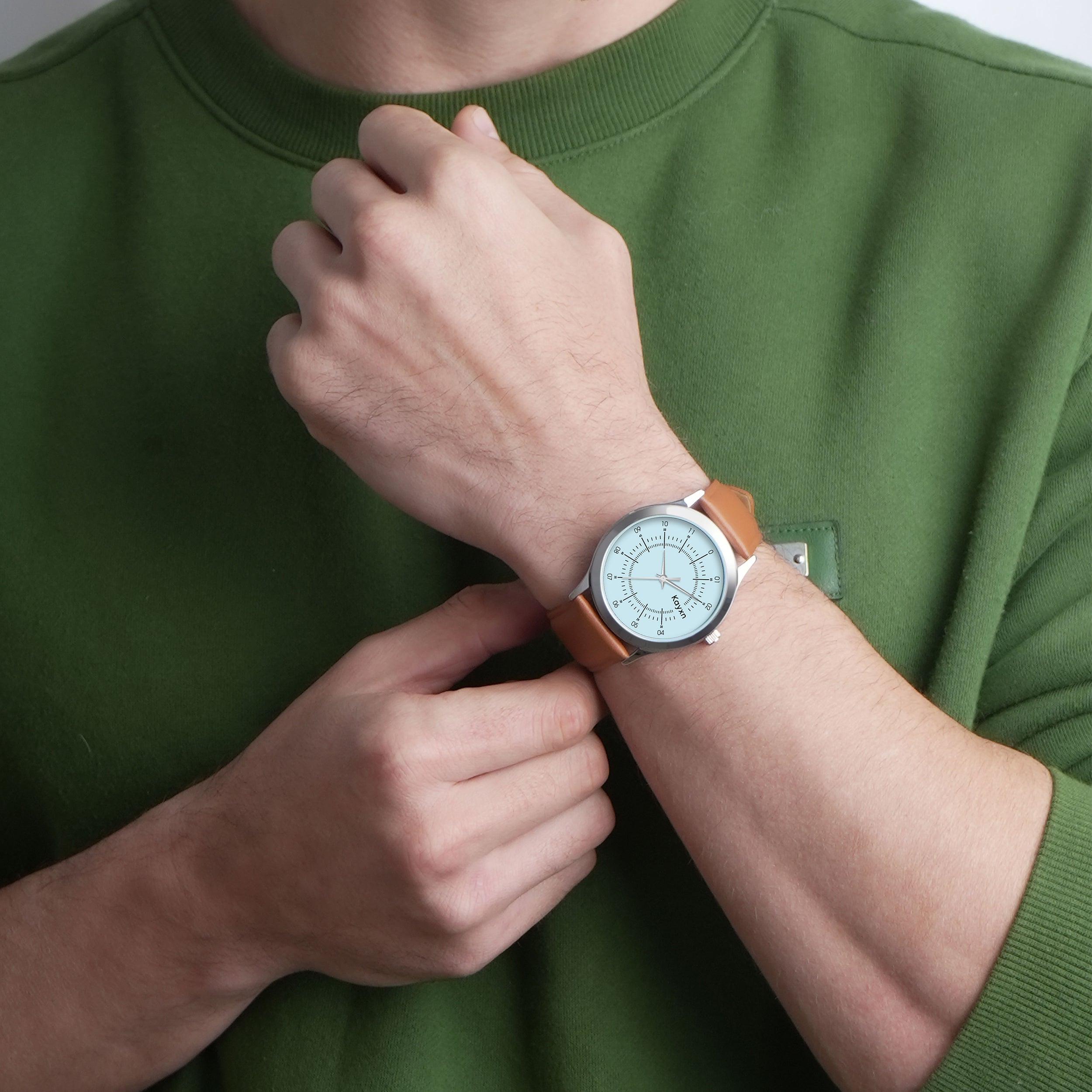 The Skyline Classic Wristwatch redefines sophistication with its stunning sky-blue dial and premium tan leather strap, designed for men who appreciate style, precision, and comfort. The clean design, combined with a polished stainless-steel case, offers a modern yet timeless look suitable for every occasion.