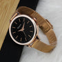 Presenting Starlit Wristwatch: this epitomizes sophistication for any woman feeling connected to luxury at its best. Perfectly merged into modern style with the unbeatable comfort of unmatched, golden metal-strapped wristwatch that catch every eye. It is a beautiful timepiece from which a pristine black dial radiates and is supported with rose-gold markers and hands that create appeal towards minimalism and beauty.
