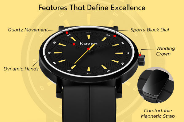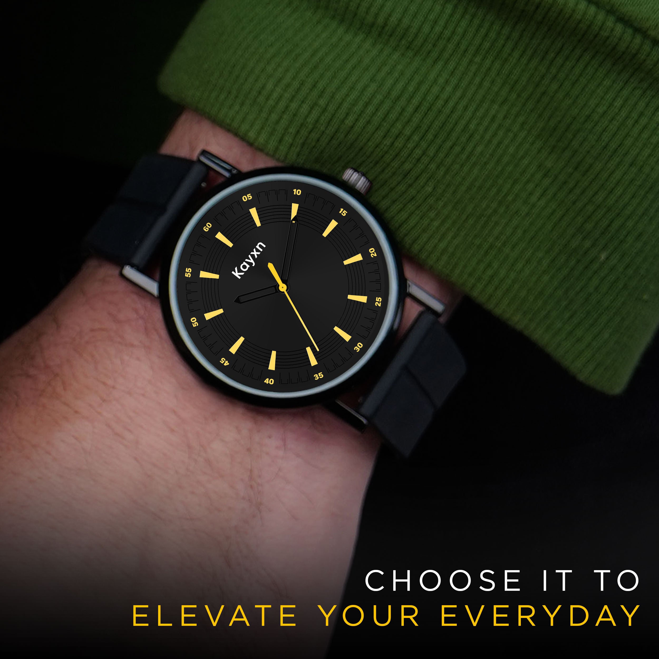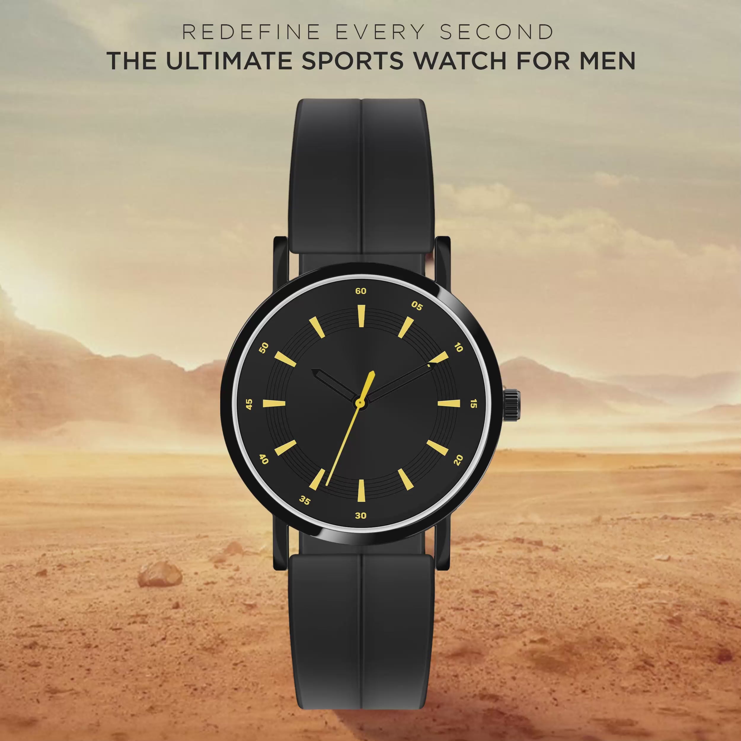 Elevate your everyday style with the Stellar Silicone Strap Watch for Men—a bold blend of sophistication and practicality. Featuring a matte black dial with vibrant yellow accents, this watch is designed to make a statement wherever you go.